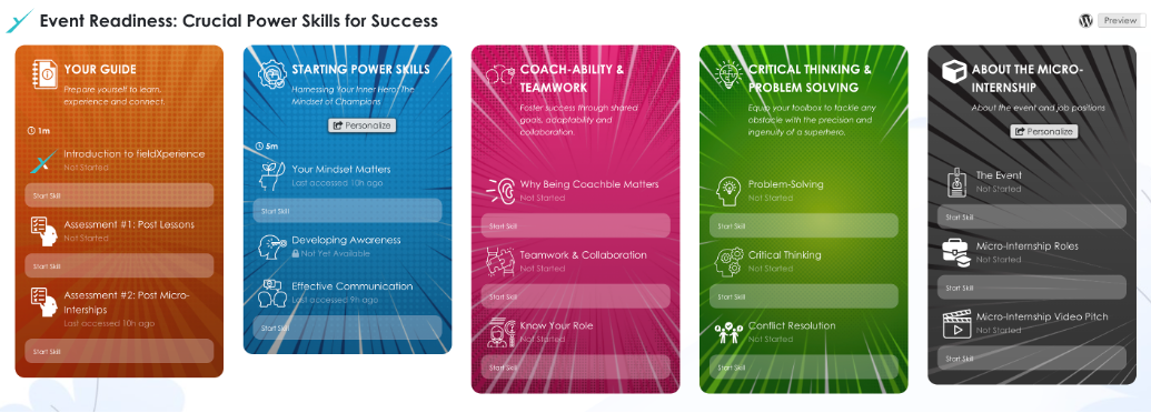 This course is designed for college students, high school seniors and graduates, aiming to bridge the gap between theoretical knowledge and practical experience through a micro-internship at a major event. It focuses on using and mastering power skills such as self-awareness, active listening, empathy, critical thinking, and problem-solving. These skills are crucial for personal and professional growth and are highly applicable in the dynamic and often unpredictable environment of events and life in general. By the end of this course, learners will not only have enhanced their power skills but also gained real-world experience, increased their network, and earned a professional badge for their LinkedIn profile.